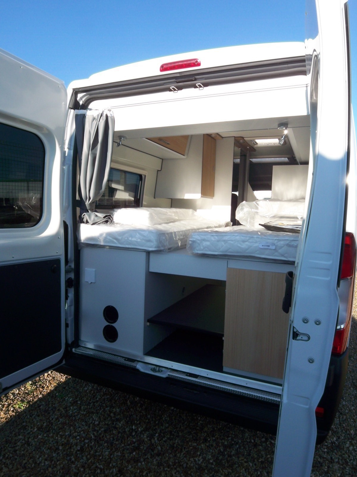 Il s'agit d'un profilé lits jumeaux et la boîte est manuelle, (on cherchait plutôt un intégral lits jumeaux ou central, si possible BVA !), mais il était difficile de tout avoir pour le budget que nous avions fixé. Le contexte inflationniste de 2022-2023 n'aide en rien.  Cela nous permet de maintenir notre capacité à manier une boîte de vitesse, nos autres véhicules étant automatiques... Et puis les lits jumeaux peuvent se transformer en lit King size.