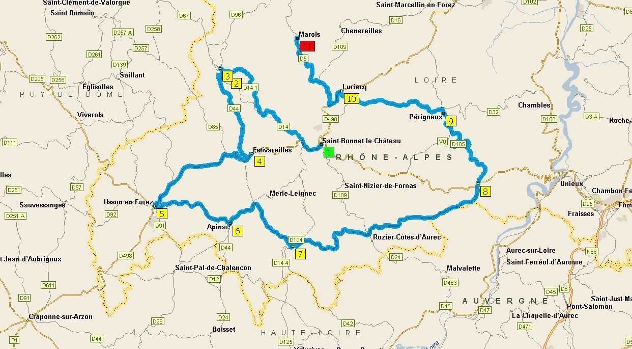 Départ du circuitA visiterAires de serviceType d'aireCommentaires
