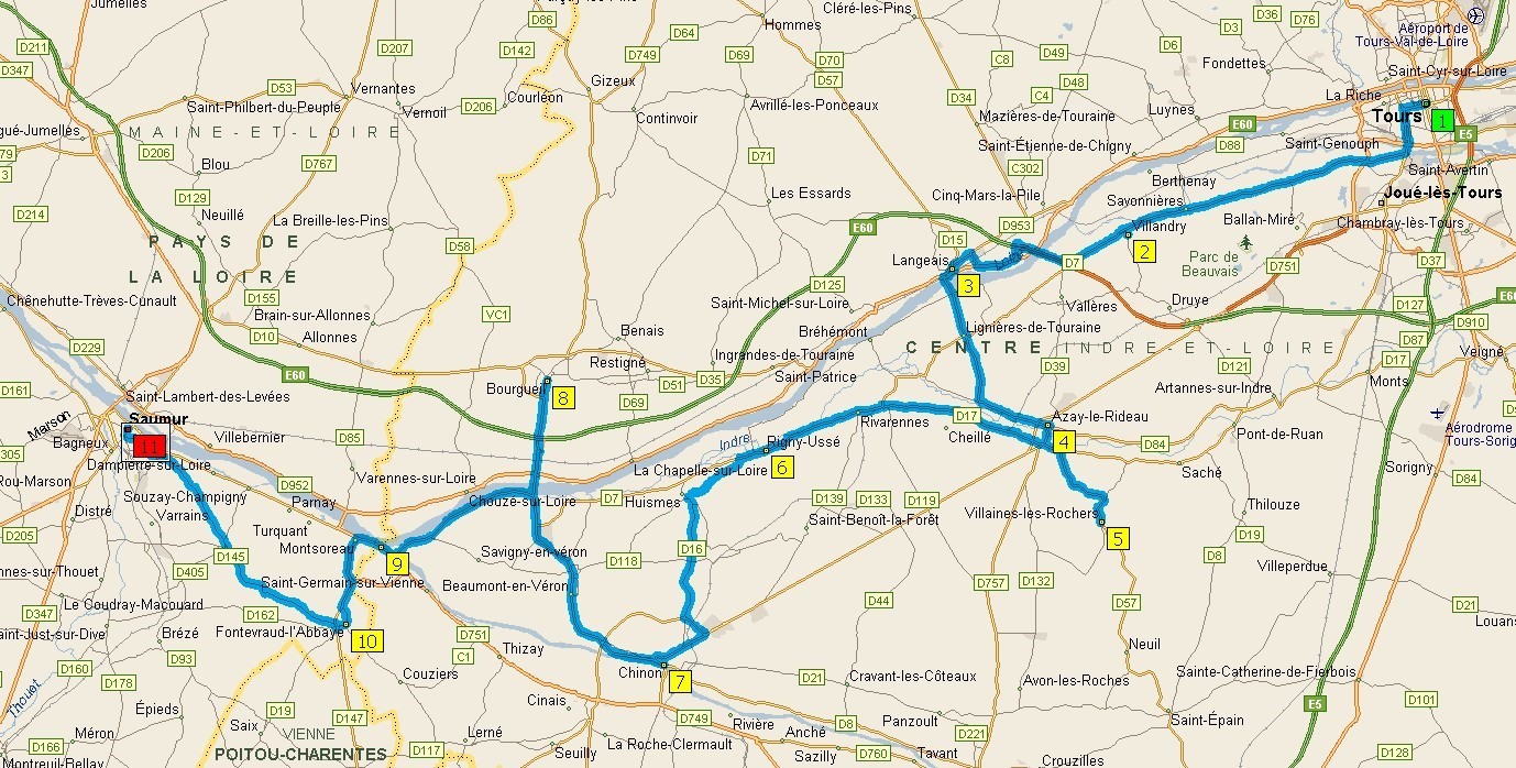 Cet itinéraire est centré sur le secteur Tours-Saumur en INDRE-et-LOIRE.