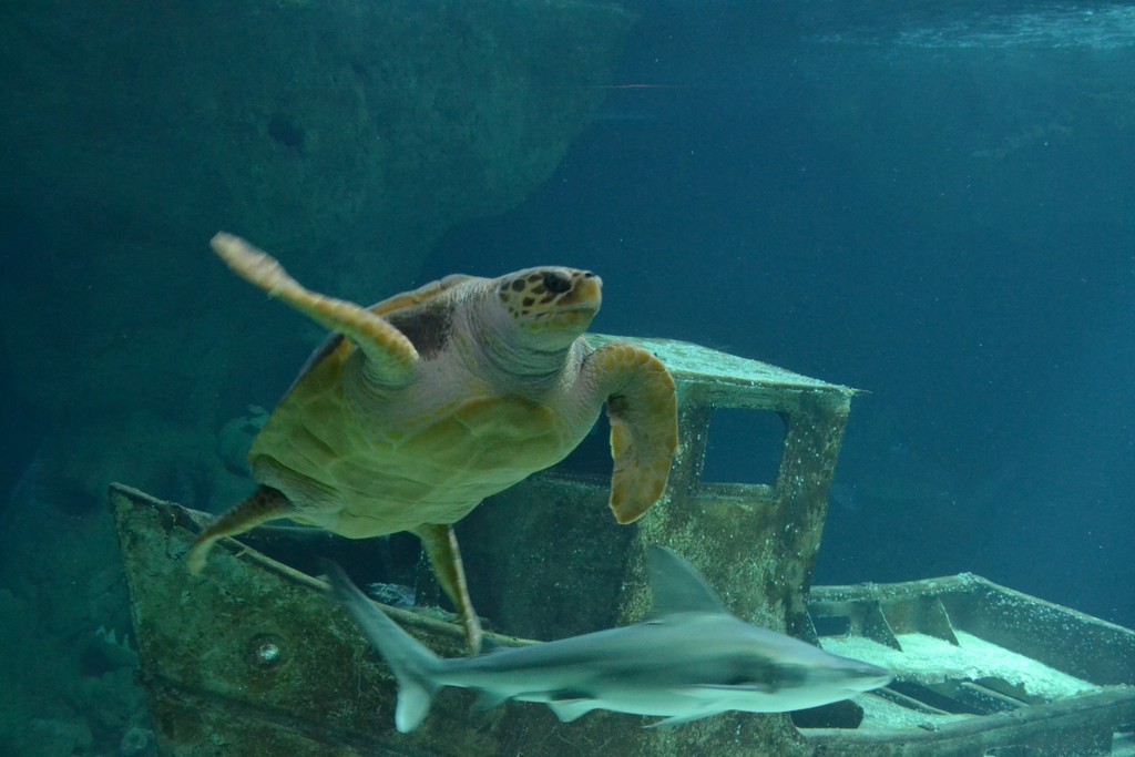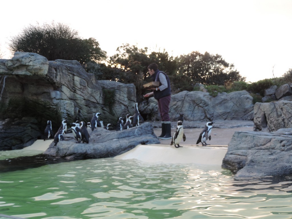 Puis nous traversons pedibus cum jambis toute la cité pour gagner l'Océarium où nous apprécions une présentation passionnante de poissons de toutes origines. Nous nous familiariserons avec les requins grâce aux explication de l'hôtesse, qui nous présente ensuite ses manchots lors du nourrissage.