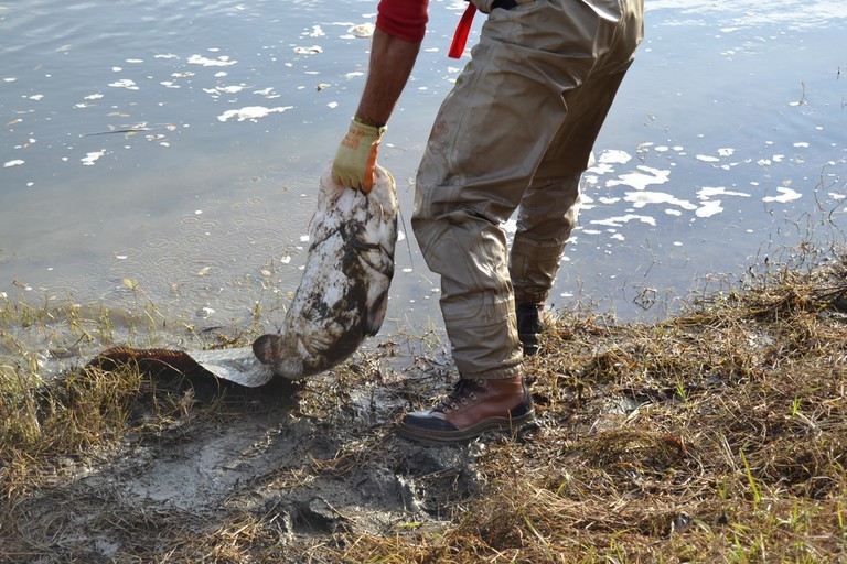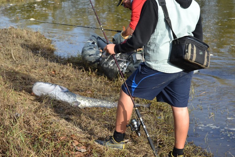 Nous assistons à la pêche d'un beau spécimen de poissons chat, qui sera remis à l'eau.