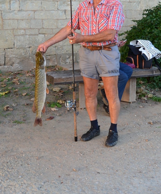 Un brochet magnifique vient d'être sorti par un camping-cariste qui est sur l'aire avec nous.