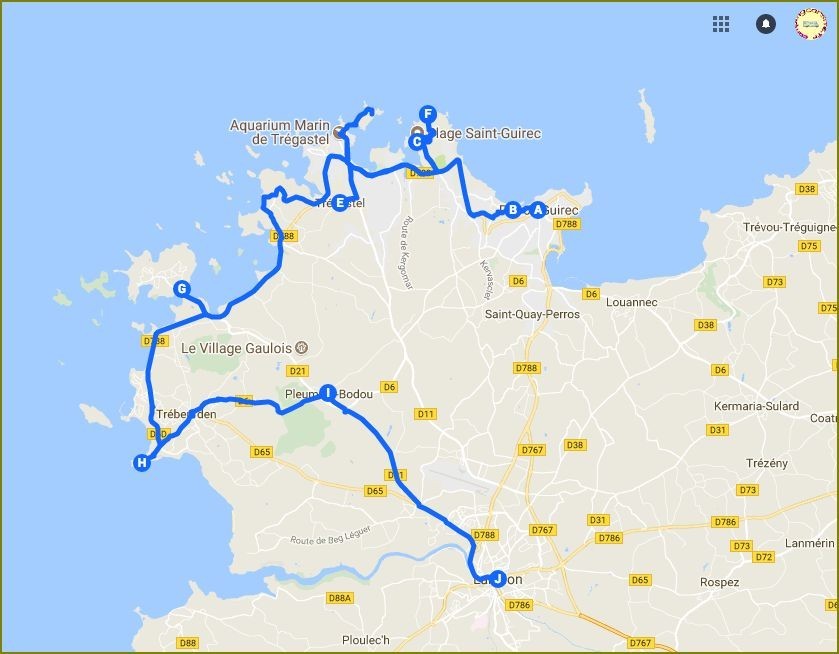80km, 3 jours: L'itinéraire commence à Perros-Guirec, station balnéaire chic et familiale (que l'on apprécie mieux hors saison, surtout  en camping-car). La route offre ensuite de belles découvertes: