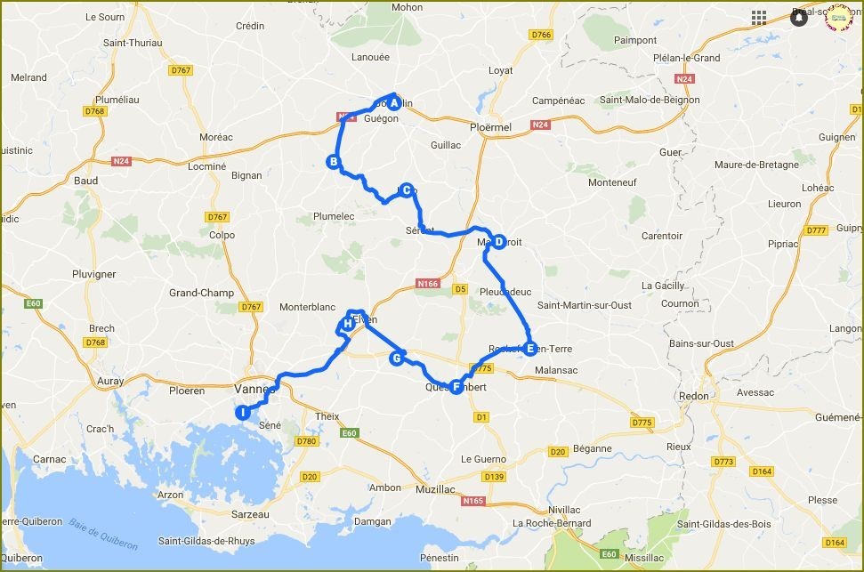 L'itinéraire se prolonge à Rochefort-en-Terre (qui est plus agréable hors saison) dont on apprécie l'architecture des XVIe et XVIIe siècles et le château néogothique bâti au début du XXe siècle. Le circuit se termine, avant d'arriver à Vannes, par la visite de la forteresse de Largoët, très bel édifice médiéval.