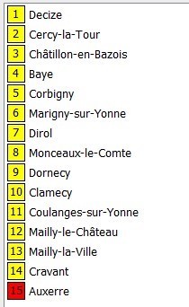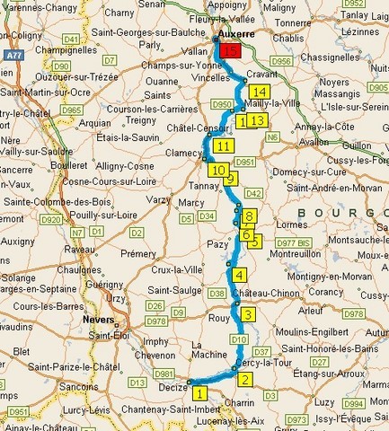 | Corbigny | Abbaye St Léonard. Suivre ensuite Marigny-sur-Yonne puis Dirol et Montceau-le-Comte | |||