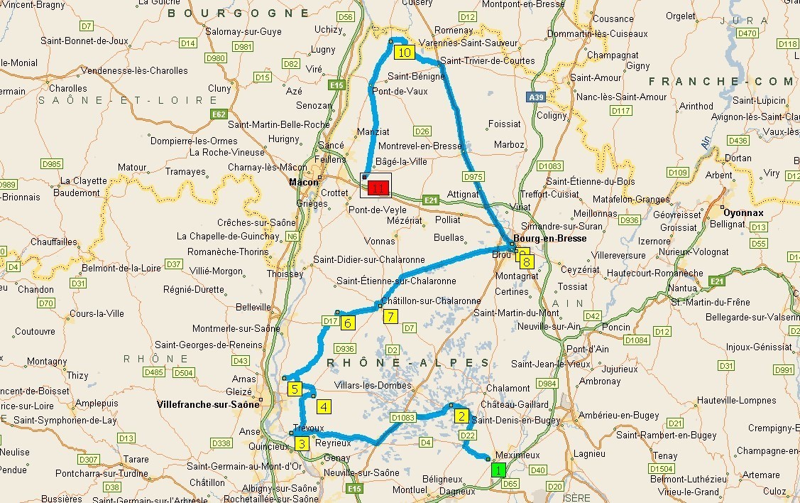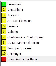 Départ du circuitA visiterAires de serviceType d'aireCommentaires