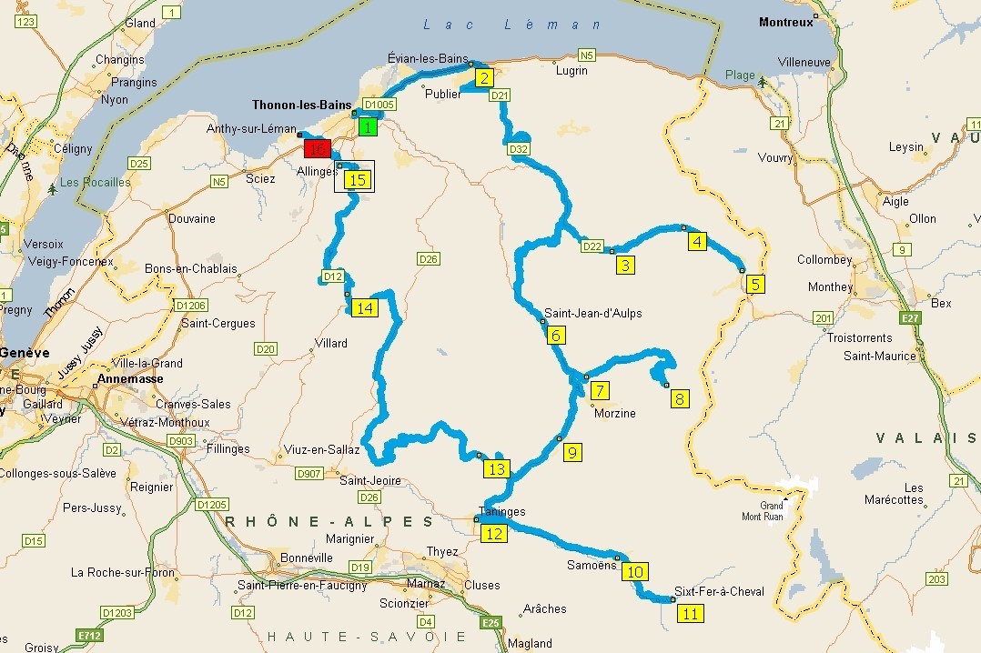 | Evian-les-Bains | Saint-Gingolph, Novel, chalets de Mémise (randonnée) | Anthy-sur-Léman | M/gratuit | Stationnement 48 h. |