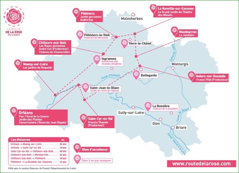 De longue tradition horticole, le Loiret est riche de jardins et de site remarquables à découvrir en empruntant la route de la rose, itinéraire touristique qui vous offrira des haltes parfumées, botaniques, architecturales et gourmandes.