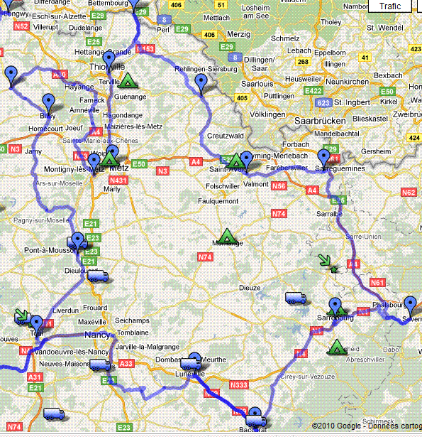 Carte Itinéraire Moselle et Meurthe-et-Moselle