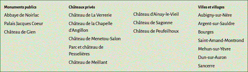 Les châteaux de Boucard et Blancafort ne s'inscrivent plus dans le cadre de la route Jacques Coeur. Leur visite étant fort intéressante nous les avons maintenus dans cet itinéraire.