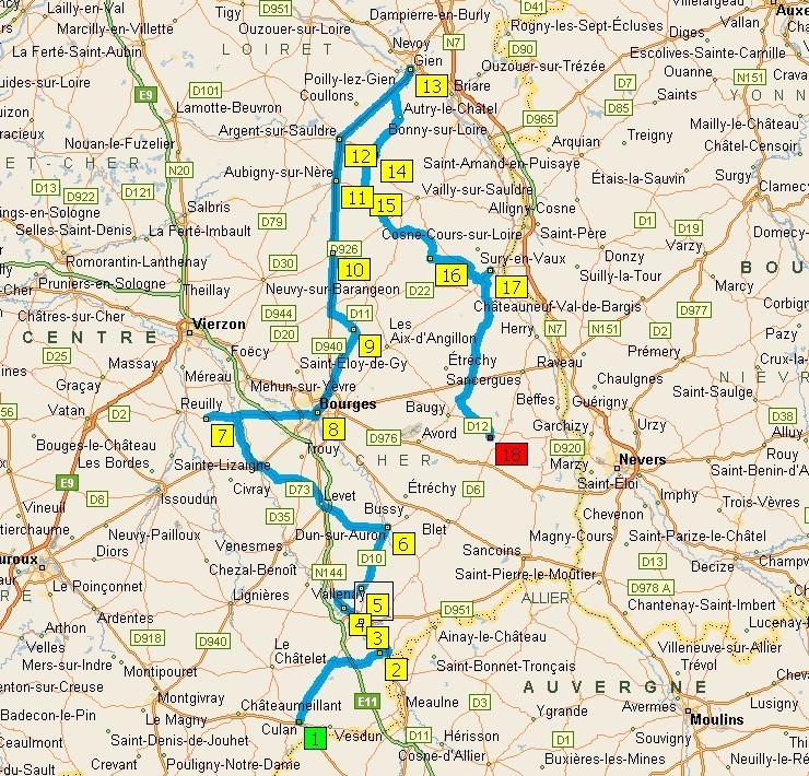 Cet itinéraire propose la visite d'une partie des châteaux de la route Jacques Coeur. Nous y avons ajouté quelques sites jugés digne de figurer dans ce voyage.