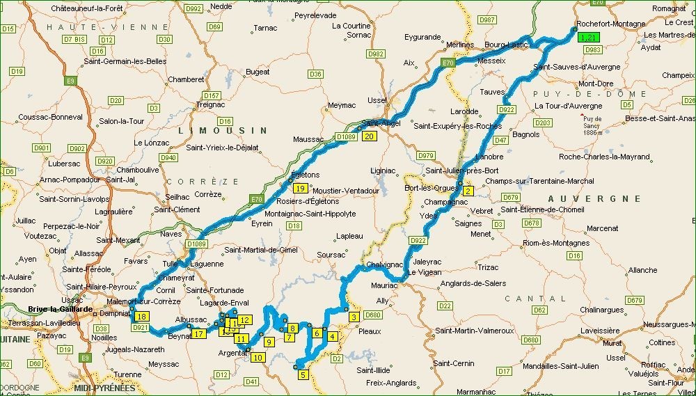 Ce circuit, plutôt court, nous a permis de visiter la Xaintrie en suivant un itinéraire dont le départ a été situé à Rochefort-Montagne, mais selon votre provenance vous pouvez le centrer sur les étapes 3 à 18, et au mieux l'ajouter à l'itinéraire Corrèze si vous en avez le temps.
